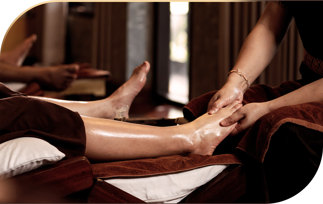 Perinteinen jalkahieronta, joka stimuloi jalkojen alueita parantaen verenkiertoa, lievittäen jännitystä ja edistäen rentoutumista. Hieronta, joka hyödyntää venytystekniikoita, auttaa palauttamaan kehon tasapainon, vähentämään väsymystä ja parantamaan kokonaisvaltaista hyvinvointia.