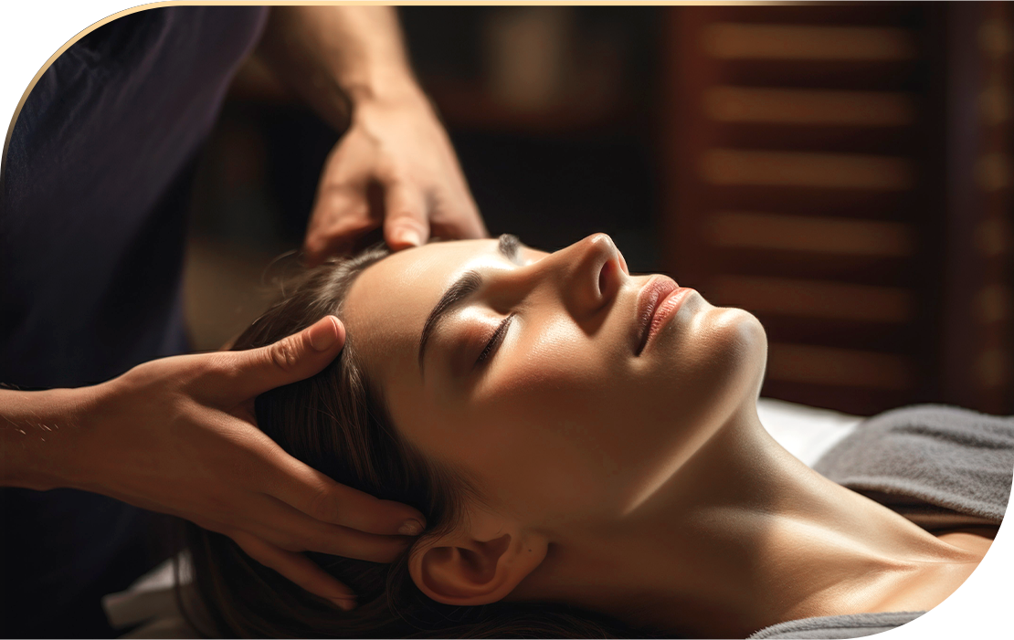 Using traditional ancient head scalp massage effectively helps to alleviates stress, migraines and headaches. Using massage friction and pressure, concentrating on the upper back, shoulder, neck, head and face, it stimulates and relaxes for refresh your feeling and clearer mind.